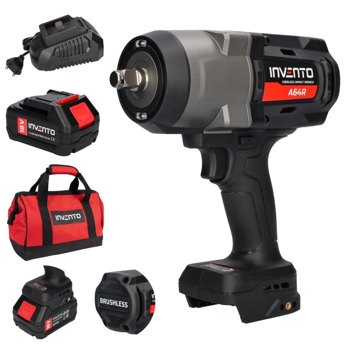 INVENTO A64R 1/2″ Accuslagmoersleutel 1880 Nm – Complete Power Set in Tas incl. 2 Accu’s & Lader